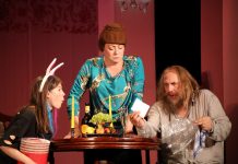 Все роли в спектакле исполняют мужчины, преображаясь по ходу действия в разных персонажей, переодеваясь тут же на сцене. Актеры играют виртуозно, с огромной самоотдачей и энергетикой, в совершенстве владея как пластикой, так и иронией, воплощая все это в образах действующих лиц.